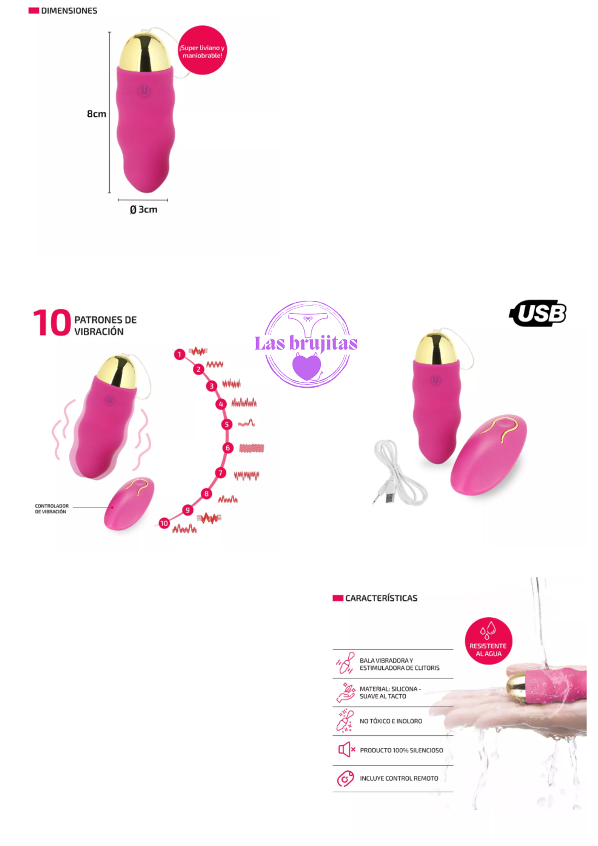 cuenta con 10 patrones de vibración, los que podes controlar directo de la bala o con el control.